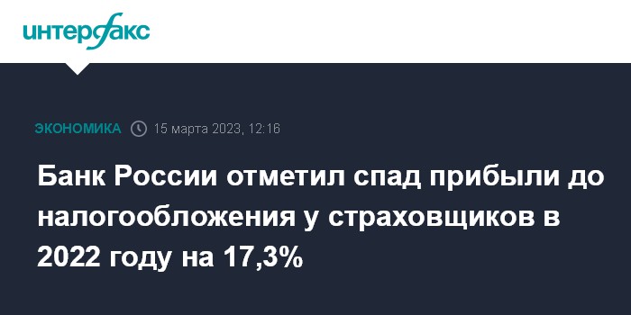 Банк России отметил спад прибыли до налогообложения у страховщиков в 2022 году на 17,3%
