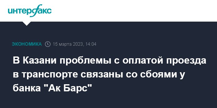 Москва. 15 марта. INTERFAX.RU - Банк "Ак Барс" сообщил о сбоях в работе своих сервисов. Из-за этого возможны сложности с оплатой за проезд в муниципальном транспорте Казани.