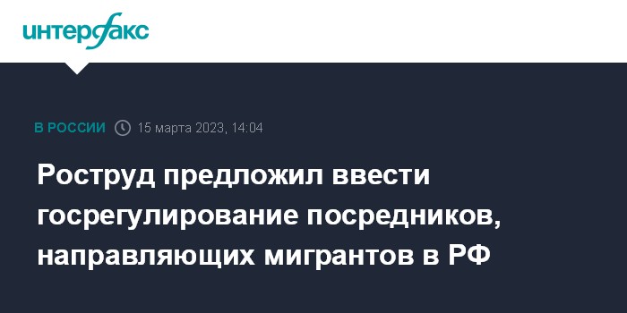 Москва. 15 марта. INTERFAX.RU - Деятельность организаций-посредников, с помощью которых трудовые мигранты направляются в Россию из стран СНГ, необходимо регулировать на государственном уровне для соблюдения прав как мигрантов, так и работодателей, заявил глава Роструда Михаил Иванков.