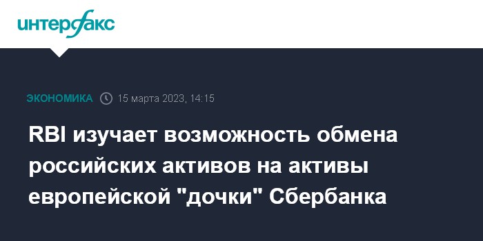 RBI заявил, что этот сценарий обмена активами является теоретическим. "Нет ни соглашения о таком обмене активами, ни других конкретных шагов по его реализации", - сообщили "Интерфаксу" в RBI. Группа отмечает, что это помогло бы ей снизить риск на Россию.