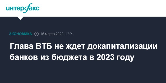 Глава ВТБ не ждет докапитализации банков из бюджета в 2023 году