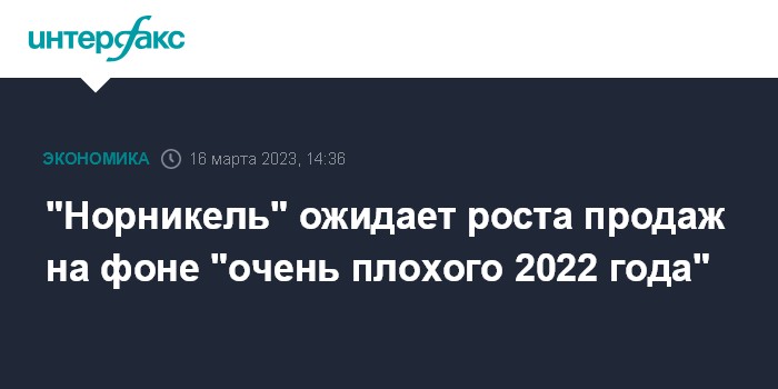 "Норникель" ожидает роста продаж на фоне "очень плохого 2022 года"