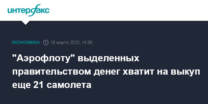 Москва. 16 марта. INTERFAX.RU - "Аэрофлот" получит как минимум 130 млрд из 300 млрд рублей, выделенных государством на выкуп самолетов у иностранных лизингодателей, считают аналитики телеграм-канала "Мои инвестиции".