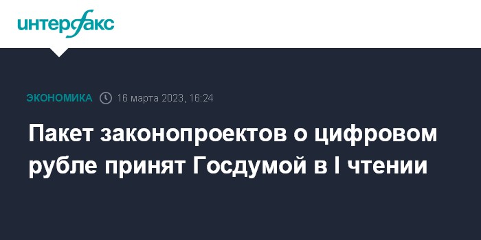 Москва. 16 марта. INTERFAX.RU - Госдума приняла в первом чтении пакет законопроектов о внедрении в РФ цифрового рубля Центрального банка и создании платформы цифрового рубля.