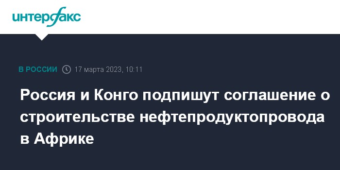 Россия и Конго подпишут соглашение о строительстве нефтепродуктопровода в Африке