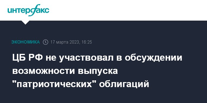 ЦБ РФ не участвовал в обсуждении возможности выпуска "патриотических" облигаций