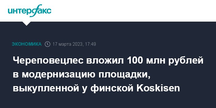Череповецлес вложил 100 млн рублей в модернизацию площадки, выкупленной у финской Koskisen