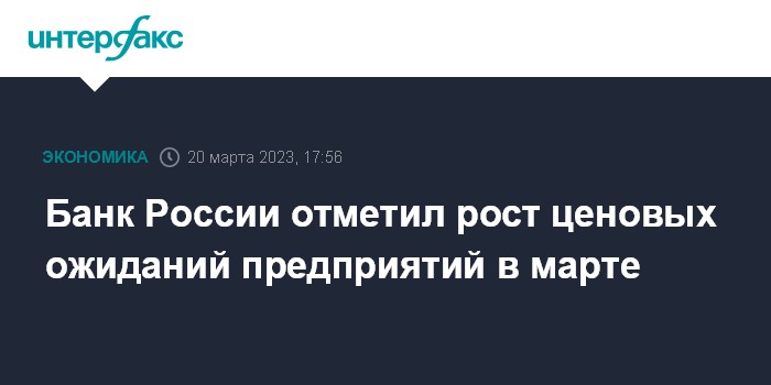 Москва. 20 марта. INTERFAX.RU - В марте 2023 года ценовые ожидания российских предприятий выросли после их снижения в предыдущие два месяца, говорится в комментарии Банка России.