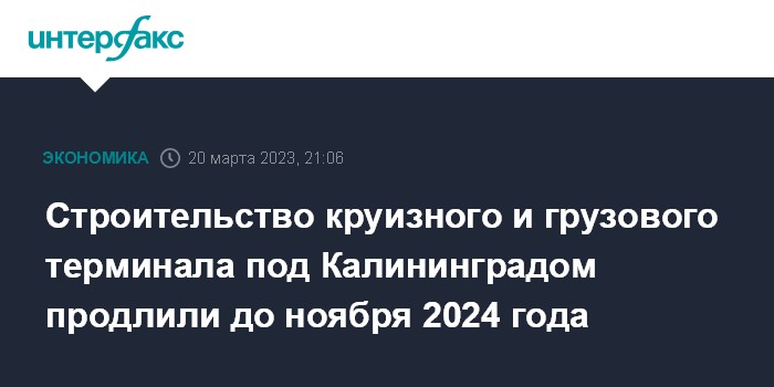 Строительство круизного и грузового терминала под Калининградом продлили до ноября 2024 года