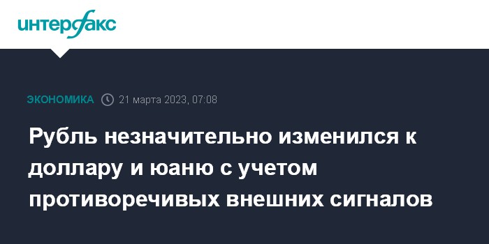 Рубль незначительно изменился к доллару и юаню с учетом противоречивых внешних сигналов