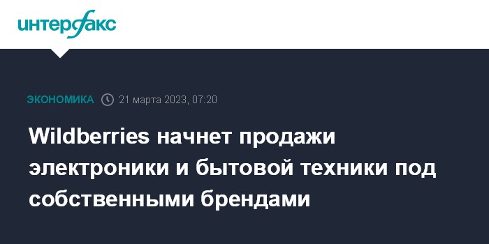 Москва. 21 марта. INTERFAX.RU - Wildberries начинает продажи в России электроники и бытовой техники под собственными брендами, говорится в сообщении компании.