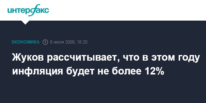 Москва. 8 июля. INTERFAX.RU - В 2009 г. инфляция не превысит 12%, считает вице-премьер Александр Жуков.
