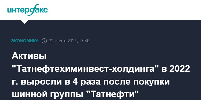 Активы "Татнефтехиминвест-холдинга" в 2022 г. выросли в 4 раза после покупки шинной группы "Татнефти"