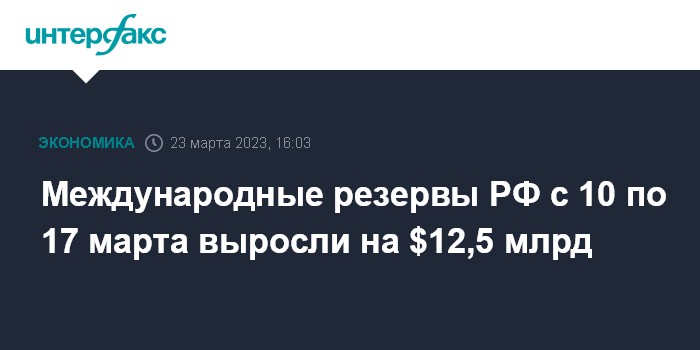 По состоянию на 10 марта международные резервы равнялись $573,3 млрд. Таким образом, за неделю они увеличились на $12,5 млрд.