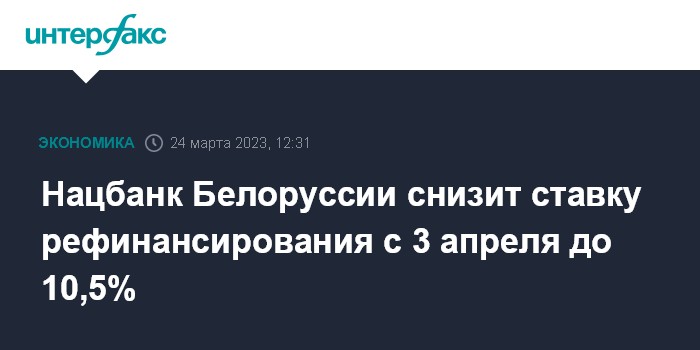 Нацбанк Белоруссии снизит ставку рефинансирования с 3 апреля до 10,5%