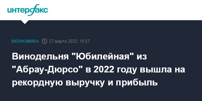 Москва. 27 марта. INTERFAX.RU - Агрофирма "Юбилейная" в Краснодарском крае, которую в 2020 году приобрела группа "Абрау-Дюрсо", завершила прошлый год с рекордными финансовыми показателями.
