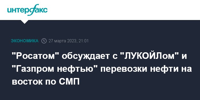 Москва. 27 марта. INTERFAX.RU - "Росатом" обсуждает с "ЛУКОЙЛом" и "Газпром нефтью" перевозки в летне-осеннюю навигацию по Северному морскому пути (СМП) нефти в восточном направлении на танкерах не ледового класса в сопровождении ледоколов.