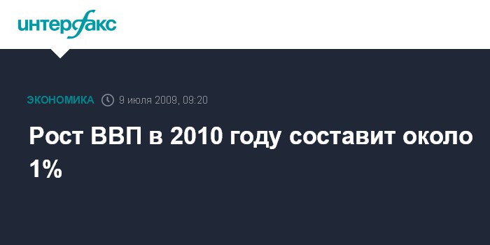 Москва. 9 июля. INTERFAX.RU - Рост ВВП в 2010 г. по оценке правительства составит около 1%, заявил вице-премьер - министр финансов РФ Алексей Кудрин, выступая на Байкальской экономической конференции в Улан-Удэ. Глава Минфина также подчеркнул, что в ближайшие три года не удастся выйти на докризисные росты ВВП - 6-8%.