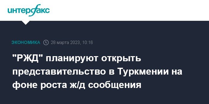 Москва. 28 марта. INTERFAX.RU - ОАО "РЖД" планирует открыть представительство в Ашхабаде (Туркмения), сообщается в официальном телеграм-канале компании.