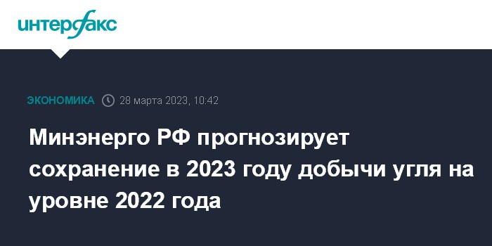 Москва. 28 марта. INTERFAX.RU - Минэнерго РФ прогнозирует сохранение в 2023 г. добычи угля на уровне 2022 г., сообщил министр энергетики Николай Шульгинов в ходе заседания коллегии министерства.