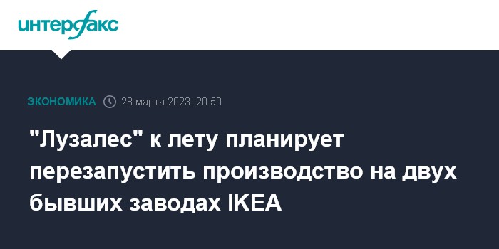 24 марта стало известно, что ООО "Лузалес" завершило сделку по покупке двух активов: "IKEA Тихвин" (Ленинградская область) и "IKEA Вятка" (Кировская область). Новый собственник фабрик будет выпускать мебель для учебных учреждений, а также товары для размещения на маркетплейсах. Финансовые условия и другие характеристики сделки в компании раскрывать не стали.