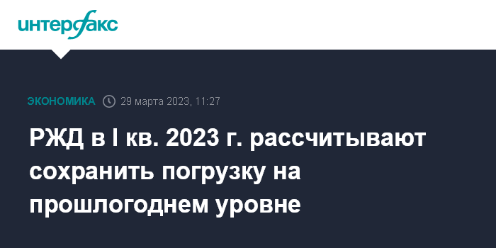 Москва. 29 марта. INTERFAX.RU - Погрузка ОАО "РЖД" в I квартале 2023 г. ожидается на уровне I квартала 2022 г., заявил глава компании Олег Белозеров в ходе заседания в Совете Федерации.