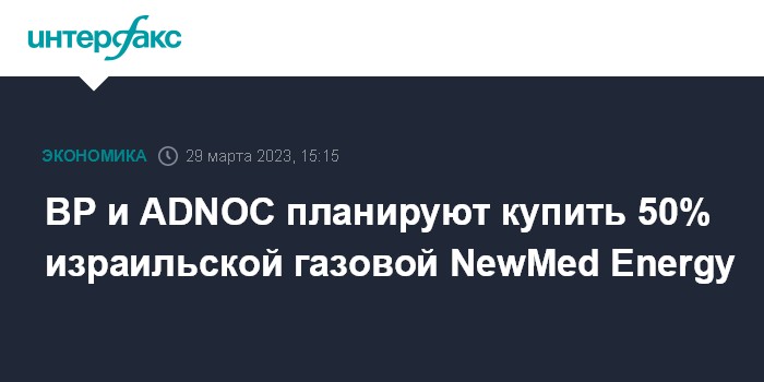 BP и ADNOC планируют купить 50% израильской газовой NewMed Energy
