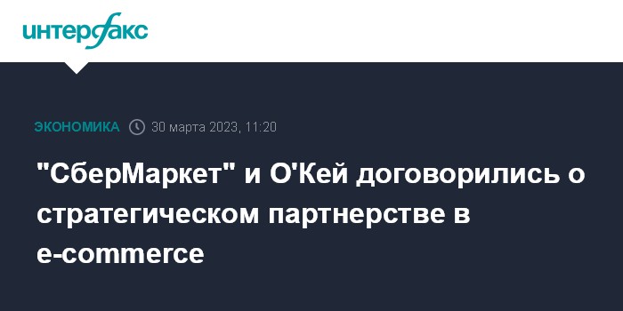 Москва. 30 марта. INTERFAX.RU - Ритейлер "О'Кей" и сервис доставки продуктов "СберМаркет" заключили партнерское соглашение на семь лет о реализации проектов в сфере e-commerce, сообщили "Интерфаксу" в пресс-службе сервиса.