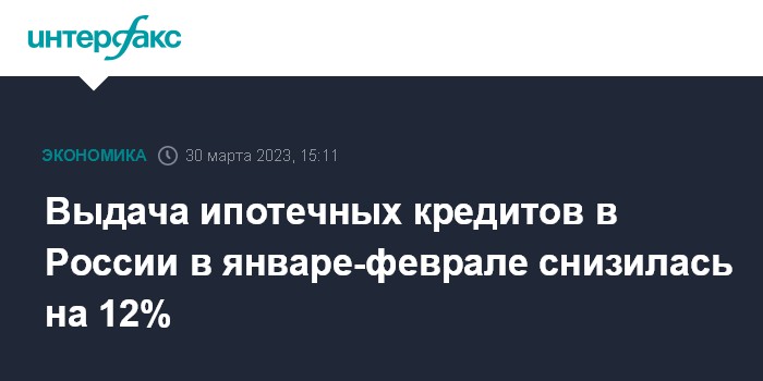 Выдача ипотечных кредитов в России в январе-феврале снизилась на 12%