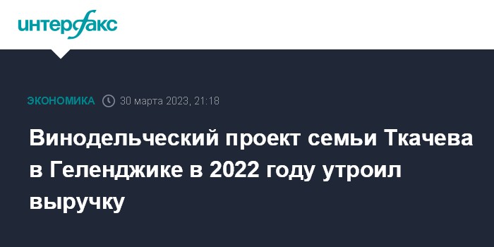 Винодельческий проект семьи Ткачева в Геленджике в 2022 году утроил выручку