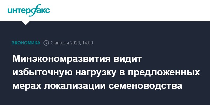 Москва. 3 апреля. INTERFAX.RU - Минэкономразвития видит избыточную нагрузку на бизнес в предложенных Минсельхозом путях локализации производства семян в России, а также считает, что выдвинутые решения не обоснованы.