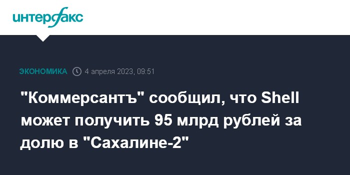 "Коммерсантъ" сообщил, что Shell может получить 95 млрд рублей за долю в "Сахалине-2"