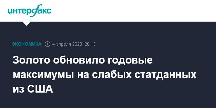 Москва. 4 апреля. INTERFAX.RU - Золото активно растет в цене вечером во вторник после публикации худших, чем ожидалось, данных по рынку труда США.