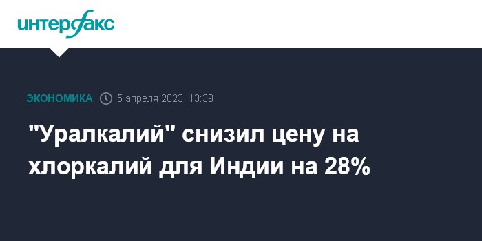 "Уралкалий" снизил цену на хлоркалий для Индии на 28%