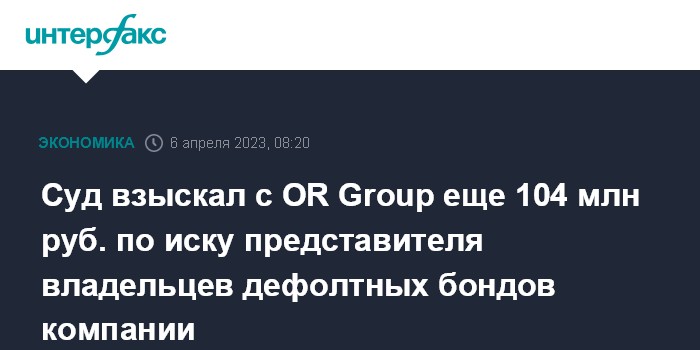 Суд взыскал с OR Group еще 104 млн руб. по иску представителя владельцев дефолтных бондов компании