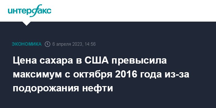 Цена сахара в США превысила максимум с октября 2016 года из-за подорожания нефти
