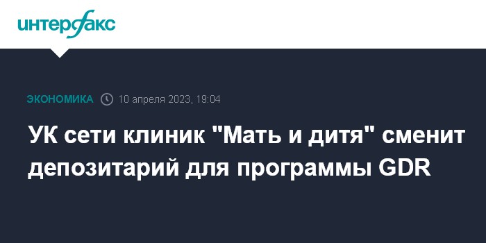 УК сети клиник "Мать и дитя" сменит депозитарий для программы GDR