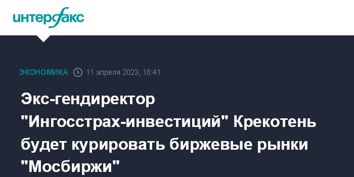 Экс-гендиректор "Ингосстрах-инвестиций" Крекотень будет курировать биржевые рынки "Мосбиржи"