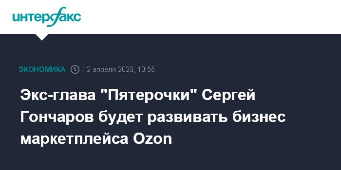 Москва. 12 апреля. INTERFAX.RU - Бывший глава розничной сети "Пятерочка" Сергей Гончаров перешел в Ozon, где будет курировать развитие вертикали маркетплейса.