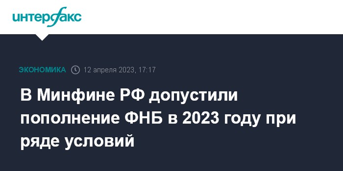 В Минфине РФ допустили пополнение ФНБ в 2023 году при ряде условий