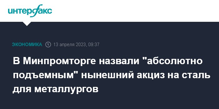 "Сейчас сумма акциза, я считаю, вполне сбалансированная (...), - сказал он. - Текущие средние показатели акциза в 1000 - 1200 рублей на тонну (стали - ИФ) - абсолютно подъемная цифра для металлургов, с учётом того, что сейчас и стоимость арматуры подросла, и горячекатаного проката".