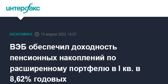 ВЭБ обеспечил доходность пенсионных накоплений по расширенному портфелю в I кв. в 8,62% годовых