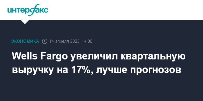 Wells Fargo увеличил квартальную выручку на 17%, лучше прогнозов