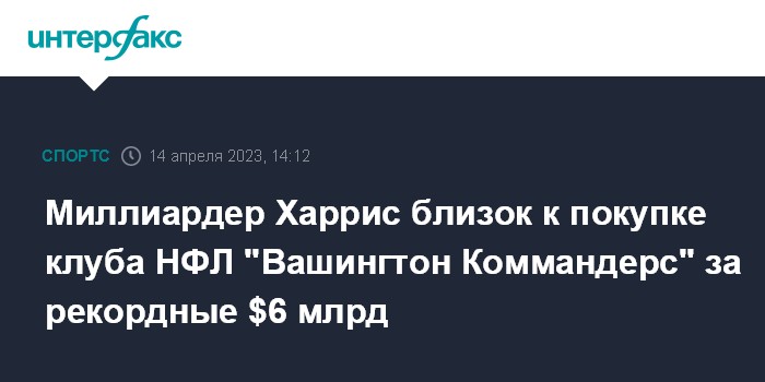 Миллиардер Харрис близок к покупке клуба НФЛ "Вашингтон Коммандерс" за рекордные $6 млрд