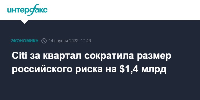 Citi за квартал снизила риски на Россию на $1,4 млрд. За счет сокращения кредитного портфеля, в том числе благодаря погашениям и продажам ссуд, удалось снизить риски на $1,9 млрд, эффект от ослабления рубля составил $0,5 млрд. Одновременно Citi увеличила риски на $1 млрд из-за дивидендов, полученных группой в качестве депозитария.