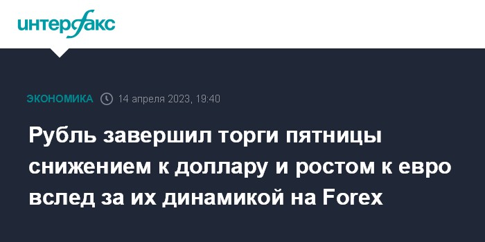 Москва. 14 апреля. INTERFAX.RU - Доллар США укрепился, евро, напротив, снизился на Московской бирже по итогам торгов пятницы; рубль слабо изменился к бивалютной корзине в условиях разнонаправленной динамики в основных парах.