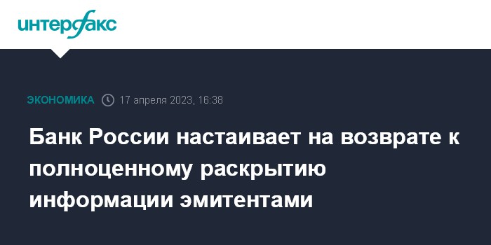 Банк России настаивает на возврате к полноценному раскрытию информации эмитентами