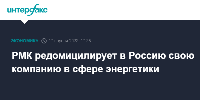 РМК редомицилирует в Россию свою компанию в сфере энергетики