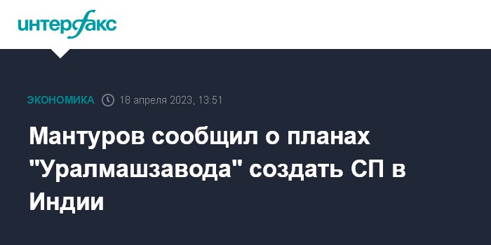 Мантуров сообщил о планах "Уралмашзавода" создать СП в Индии