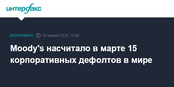 Москва. 18 апреля. INTERFAX.RU - В марте 2023 года число корпоративных дефолтов в мире выросло до максимума с декабря 2020 года, свидетельствуют данные Moody's.